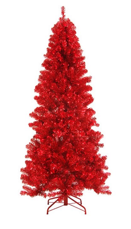 That’s where you can find stuff like this 7′ Pre-Lit Paradise Red Tinsel Artificial Christmas Tree, Red Lights. It was on clearance for just $88, but it’s all sold out. Sorry.