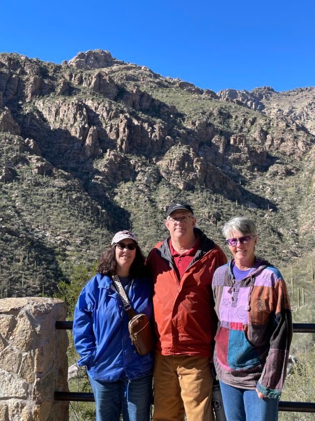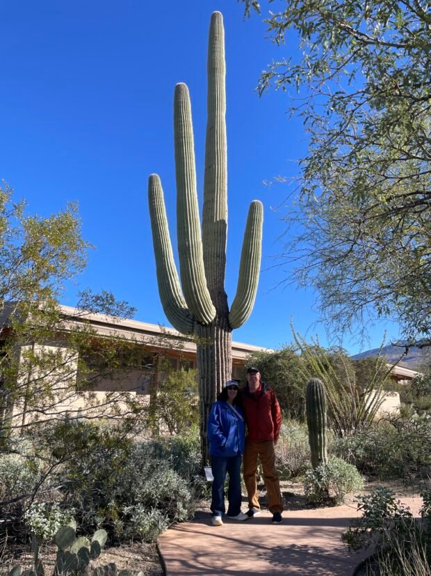 From there, we headed over to Sabino Canyon Recreation Area in the Coronado National Forest. That’s where Sharen captured the selfie of the four of us on the Sabino Canyon Crawler, the emission-free electric shuttle that ferries folks 3.7 miles up the canyon.