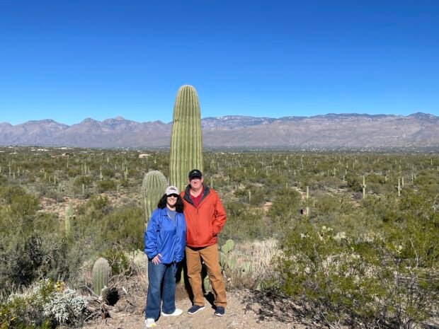 First, we took a quick trip to Saguaro National Park. That park is a bit unique in that it has two separate sections, one on either side of the city of Tucson. There’s the western Tucson Mountain District, which we did not have time to visit, and the eastern Rincon Mountain District. The eastern part of the park is very close to where we live and it has a nice, paved, eight-mile driving loop, which makes for a very easy way to get up close to the majestic saguaros as well as other desert vegetation.