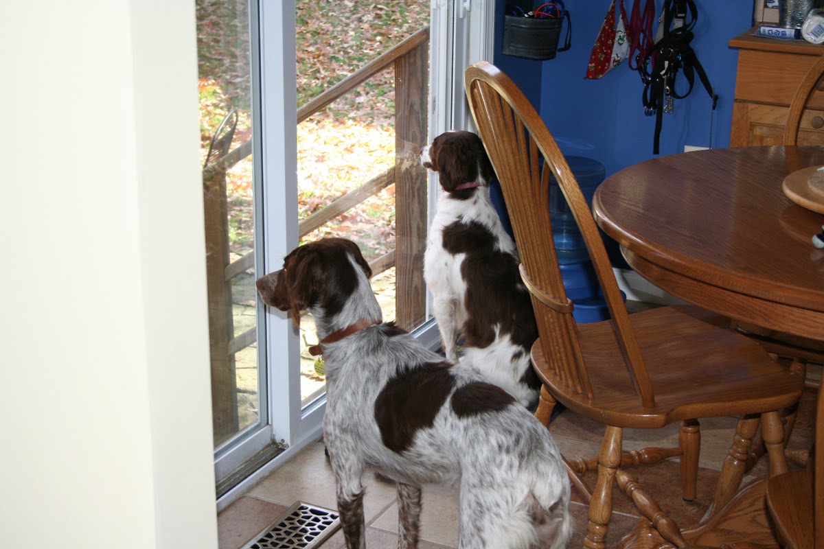 They’re actually doing well. Belle and K are equally obsessed with watching the backyard for critters.