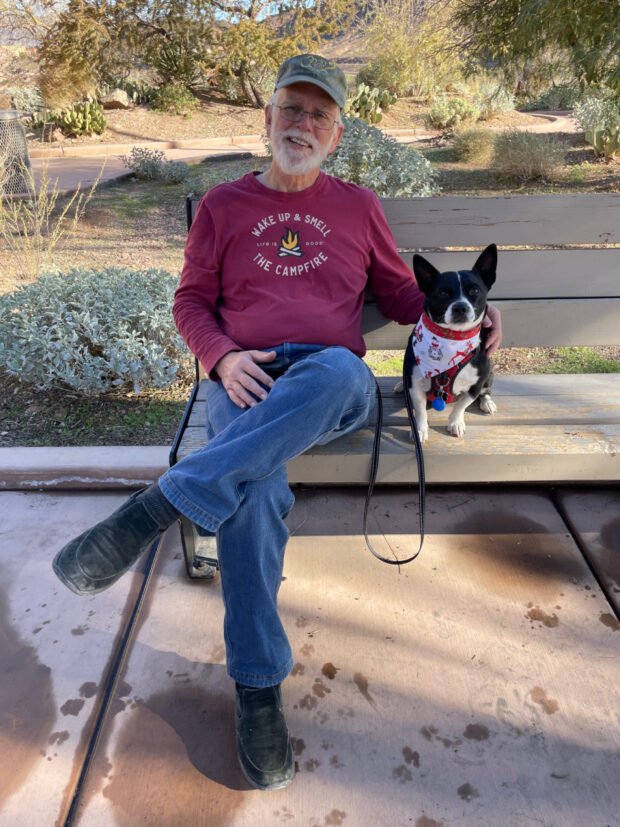 The Petroglyph Wall Trail is only 0.15 miles with a 26-foot elevation gain. It was the prefect distance for Fred and his short little legs.