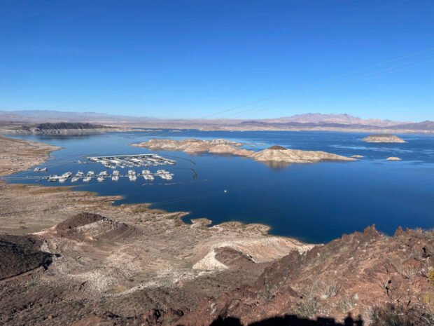 We were both more interested in the Lake Mead National Recreation Area. We’d already driven through it twice, once on the way to Valley of Fire while towing the camper and once on Tuesday when driving back to the state park. It’s a beautiful drive. We’d be doing it again that afternoon once we picked up that critical refrigerator part and again while towing the camper after leaving the state park on Saturday.