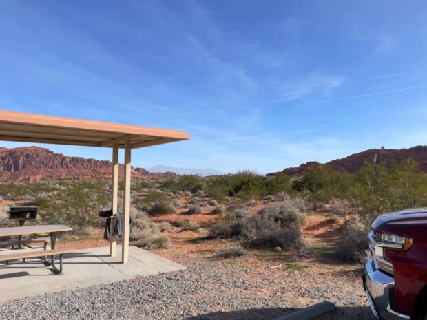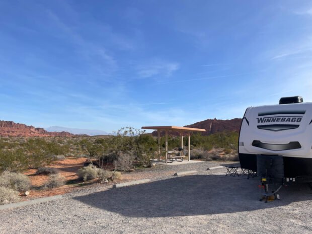 The site I secured in Valley of Fire State Park was very nice. In fact, it’s probably one of the nicest campsites we have occupied. The site was a pull-through along the road on the edge of the campground. That meant we had neighbors in front of and behind us, but none right next to us. The site itself was spacious and, as you will see in the images I shared below, we had great views.