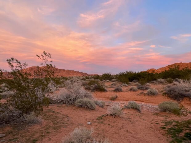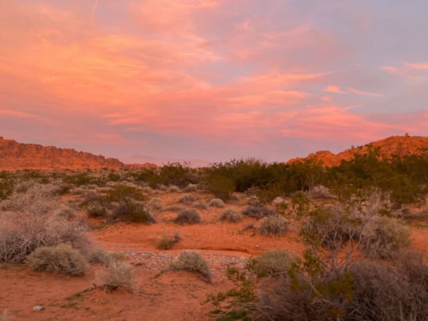 It’s not unusual to see really pretty sunsets when in the desert. Especially when in a big, flat, open space and there are some clouds in the sky. It’s a 360-degree view of beautiful colors.