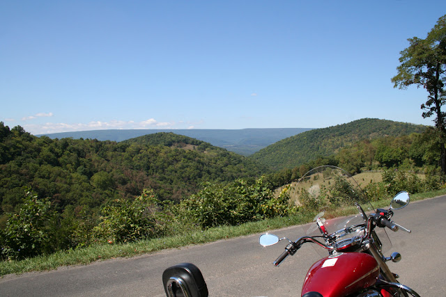 On one mid-September morning, Hubby and I were both quite noncommittal about venturing out. We’d frozen our asses off in the mountains the previous day. (Temps in the mountains slightly west of use are sometimes as much as 20 degrees cooler than here.) But when I drove into Romney for breakfast at McDonald’s, I realized the weather was so perfect, it would’ve been almost criminal not to ride.