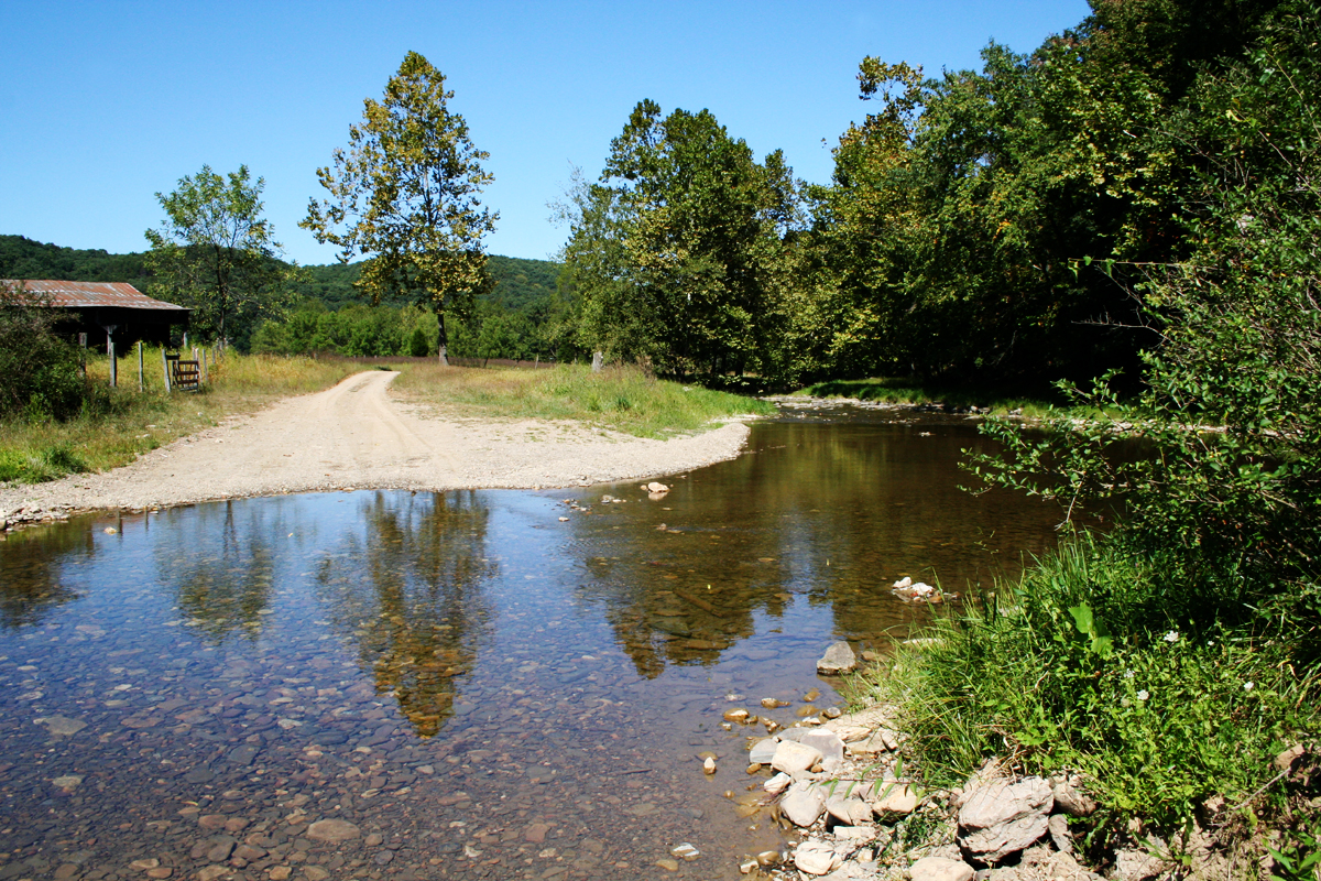 Had we been in the truck, we could have forded the smallish waterway. Fording creeks, however, is never a good idea on big-ass, 800-plus-pound street motorcycles. Traversing dirt and/or gravel roads is enough of a challenge. Driving over slimy wet rocks in a creek? Uh, no.
