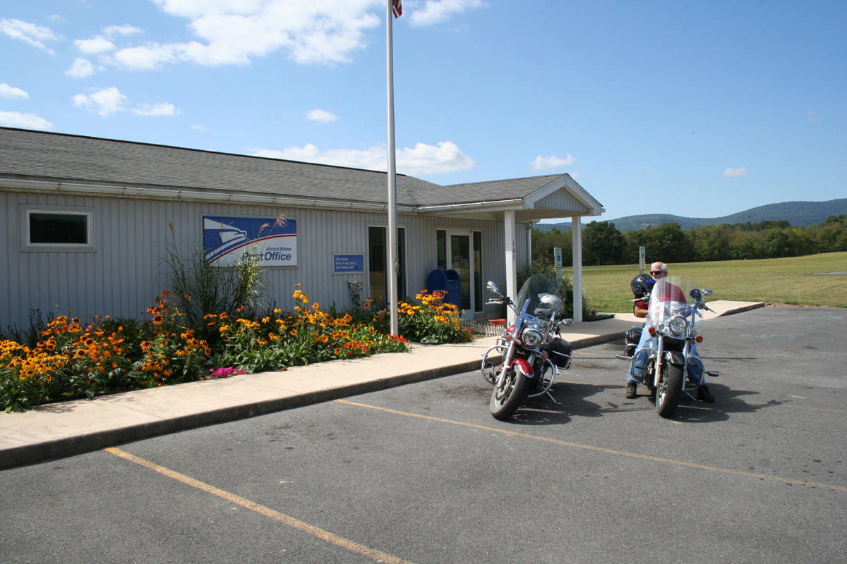 I couldn’t resist stopping to take a picture of the flowers at the Post Office just off US-220 South of Old Fields, WV. After that brief pause, we headed West on Old Fields Road [CR-2/5] into Williamsport, WV.