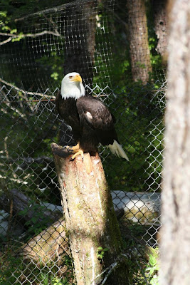 The historical park was all about the history of the Indians who first settled here–Tlingit–as well as the Russians who later claimed their land and the Americans who later bought it from Russia. The raptor center is a place where they rescue orphaned or injured raptors (eagles, hawks, falcons, owls, etc.) and either rehabilitate them for release or give them a place to live if they are not able to be released due to their injuries.